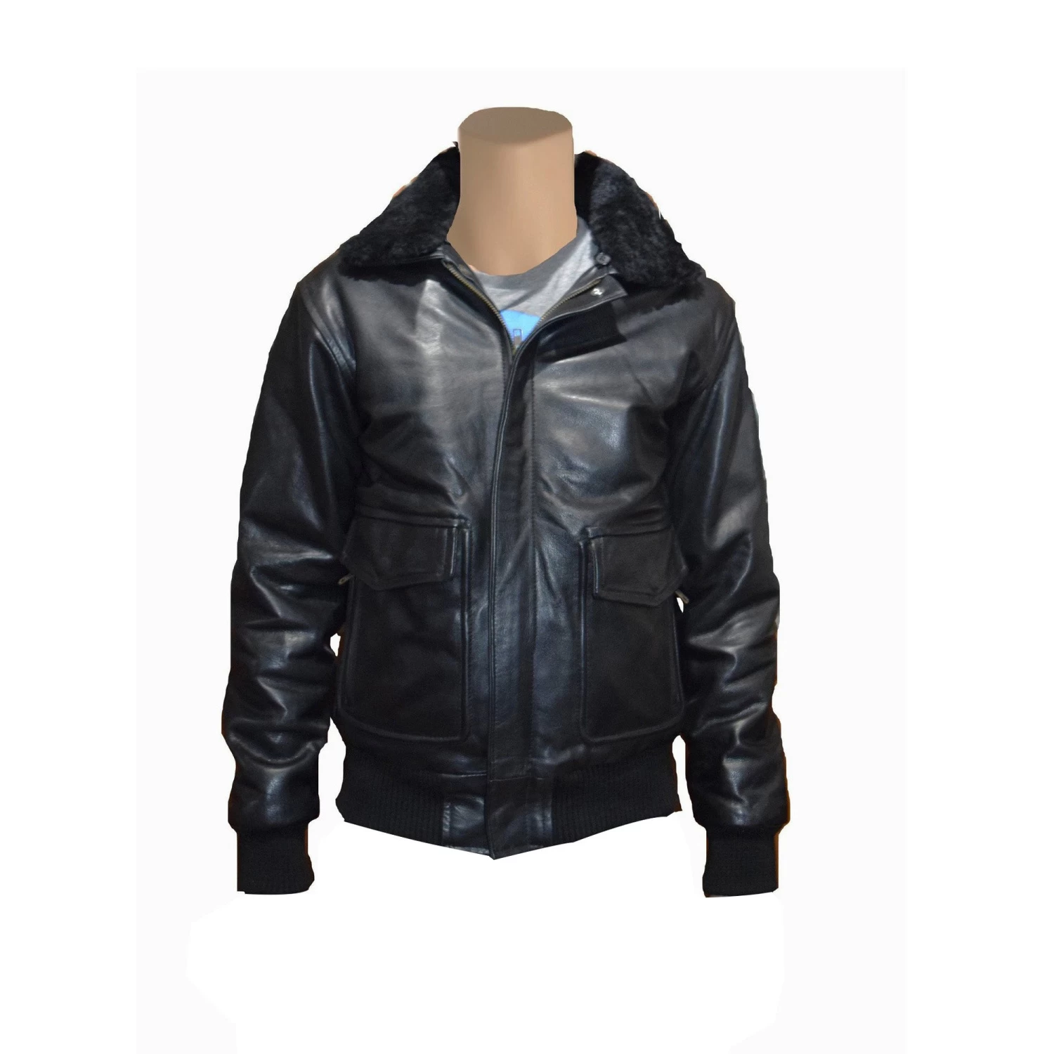 Would you like something warm and fluffy? Our A2 bomber aviator leather jacket is both stylish and comfortable. A sheep fur collar enhances its charm. It also has a rayon lining, a zipper closure, rib knit cuffs, and two pockets on the inside and two on the outside for adequate warmth.