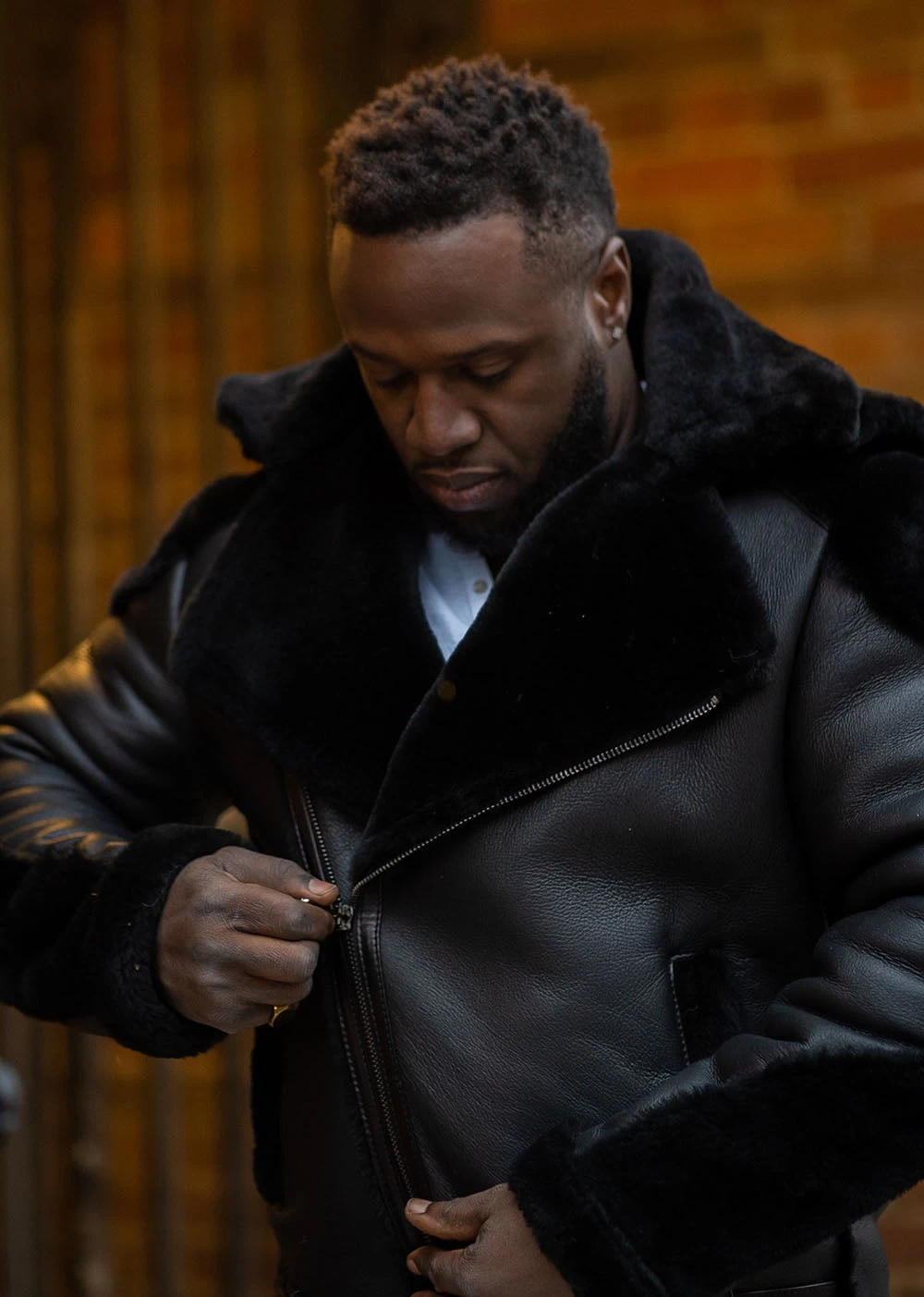 Alek’s Biker Shearling Jacket with Fur Details now becomes a hot sensation among young people. For this season, Biker Jacket is a comfort-chic outwear that will keep you cozy all day long. The super trendy leather jacket has amazing details. It is made out of a 100% Heavy USA-made double-faced sheepskin shearling and a 100% sheepskin shearling inner lining provides a comfortable look with immense pleasure. Further, it has a shirt-like collar with a belt and a zipper closure on the front to give a sophisticated look.