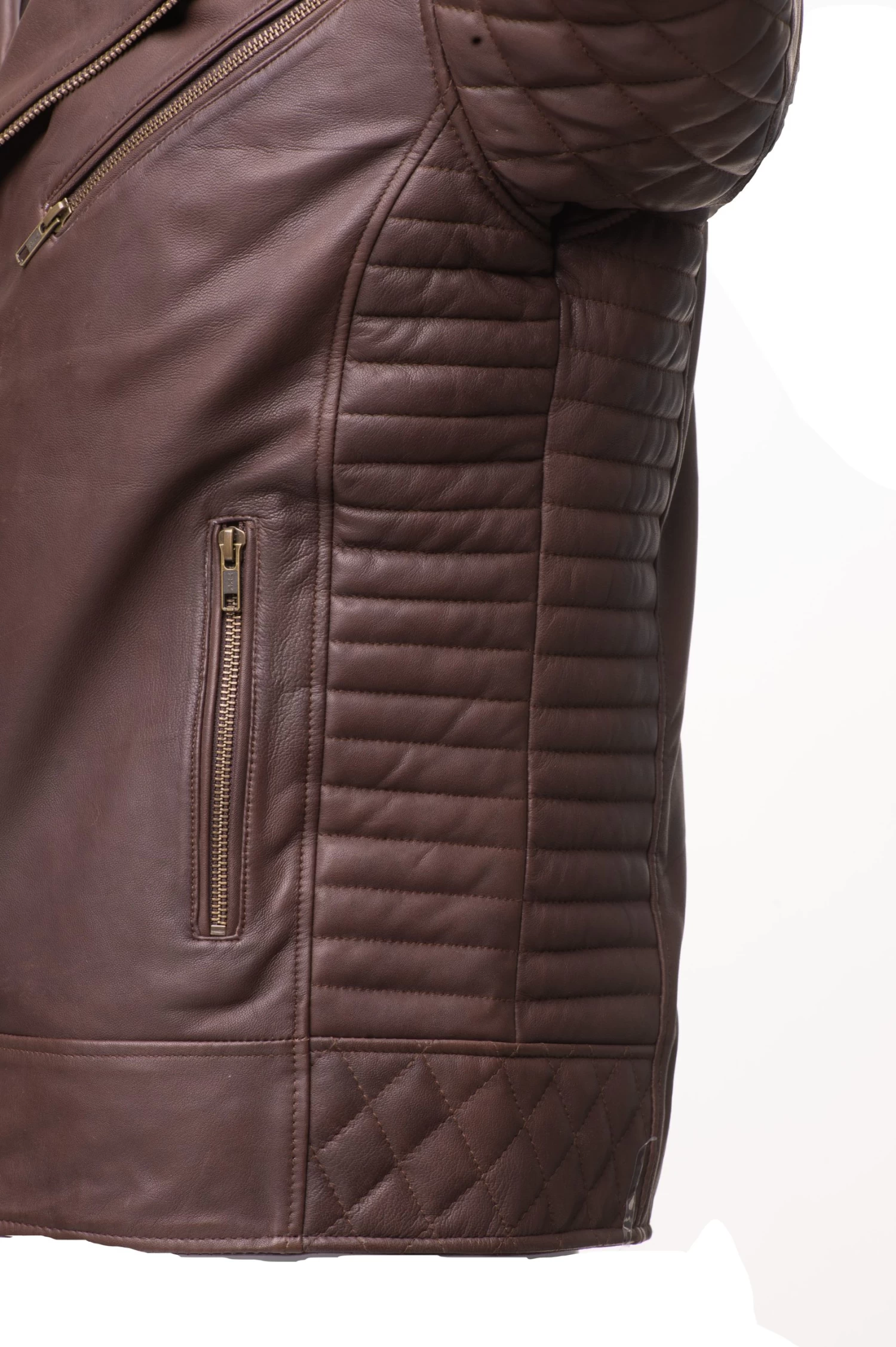 Stylish and high quality, Lusso Leather’s Brown Quilted Biker leather jacket is made from full grain Lambskin leather, giving the rider a good look and fantastic wear. Full grain Lambskin leather is Soft, Flexible, Smooth and Thinner than most leathers. It is the outermost layer of hide and is the strongest layer of hide because the fibers are vertically integrated and highly ordered.