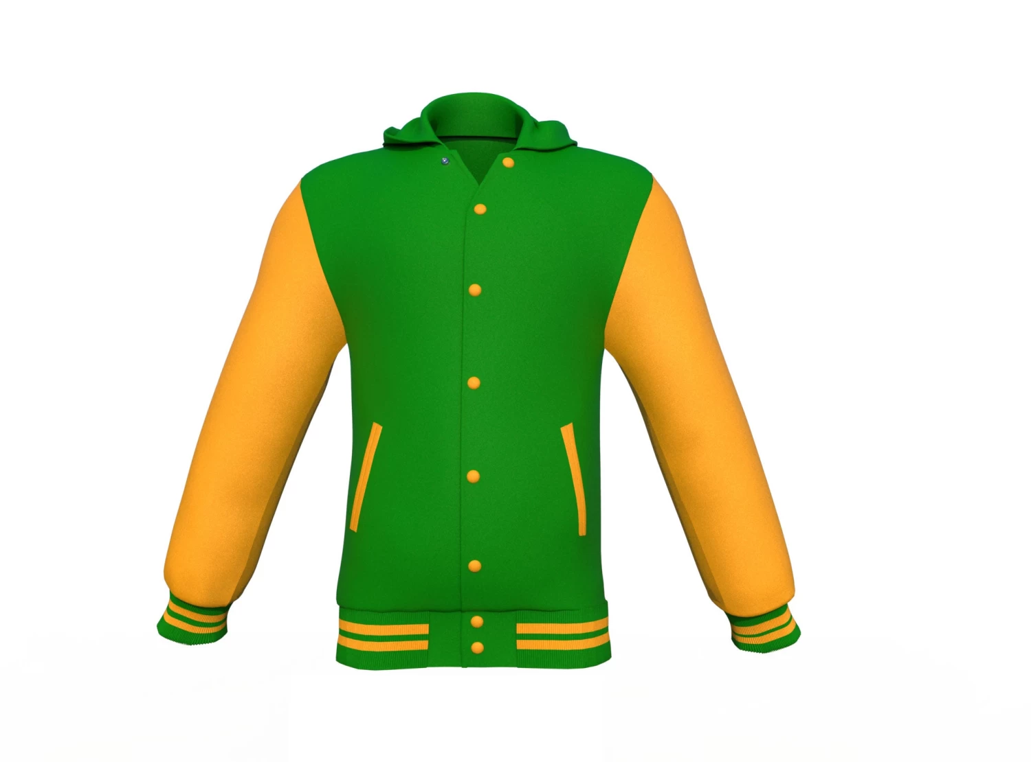 Dark Green Varsity Letterman Jacket with Gold Sleeves