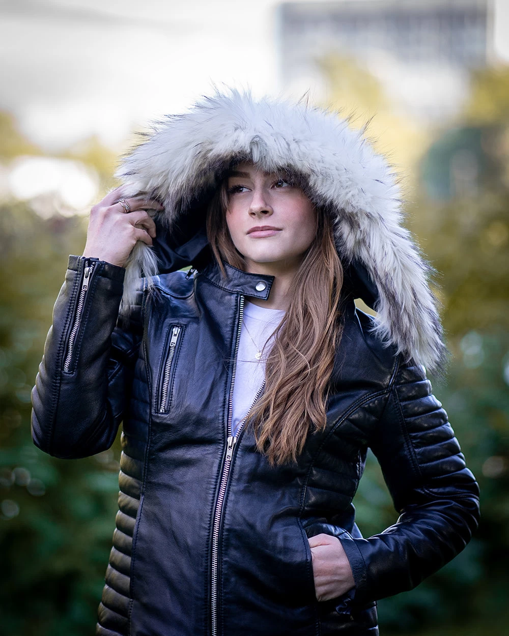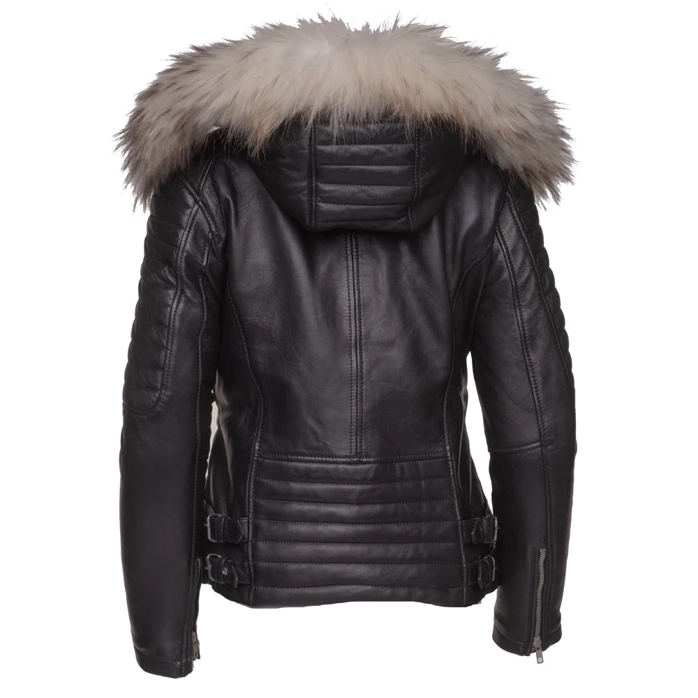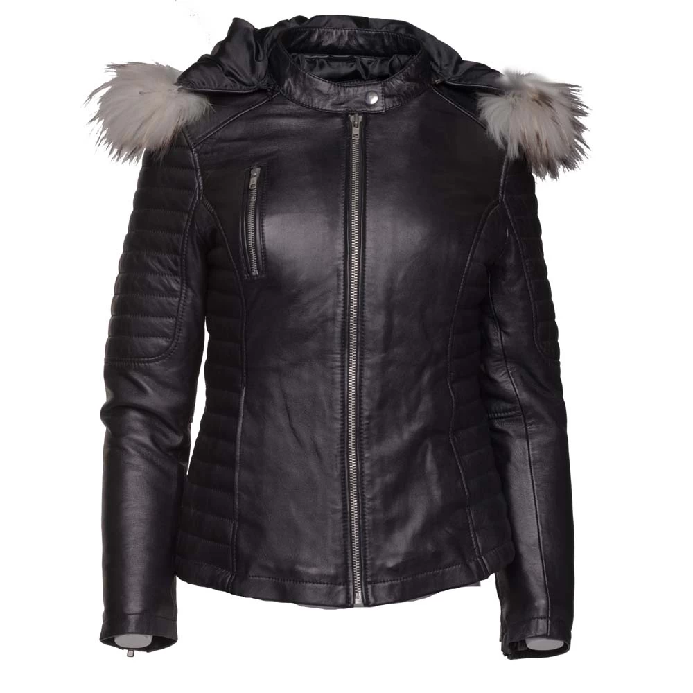This super-soft and comfortable Larissa’s Black Leather Jacket with Hoodie and Fur Trim is perfect for the winter season. This elegant jacket is fabricated with full-grain leather and inwardly stitched with satin polyester to make you feel warm and comfortable. The glossy black color makes it classy to wear. The Larissa’s Black Leather Jacket has been modishly designed by using features like a snapped collar, zipper closure, and one zipper pocket that is nice to carry your belongings. Larissa’s Black Leather Jacket will be your perfect choice for heading out.