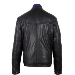 Haworths Moto Style Leather Jacket With Ribbed Stitched Sleeves