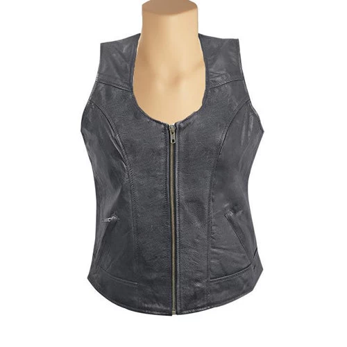 - Women’s black leather vest