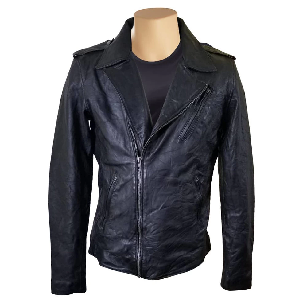 Seeking a top-notch leather jacket to add to your wardrobe? You won’t find a better jacket than the wrinkled texture jacket, which is made of top grain leather and has a notch lapel collar for added charm. The wrinkled texture lends a dramatic air to the jacket. Its ultra-contemporary design is evidenced by details like a zippered front, open hemmed sleeves, an interior pocket, and three exterior zippered pockets.