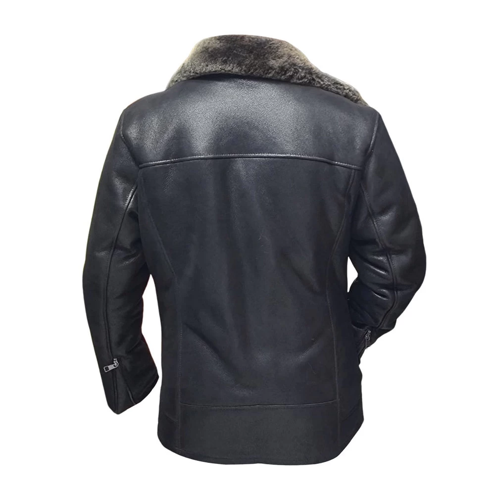 Having your hands on a warm shearling coat is always a good idea, and who could refuse a view of such exquisiteness? Steal our Robbie’s Black Shearling Sheepskin Car Coat to add a dash of confidence and style to your wardrobe. It has an asymmetrical Zipper, Notch lapel collar style with strap, open hem zipped cuffs, one pocket inside, and two functional zipper pockets outside for keeping your hands warm.