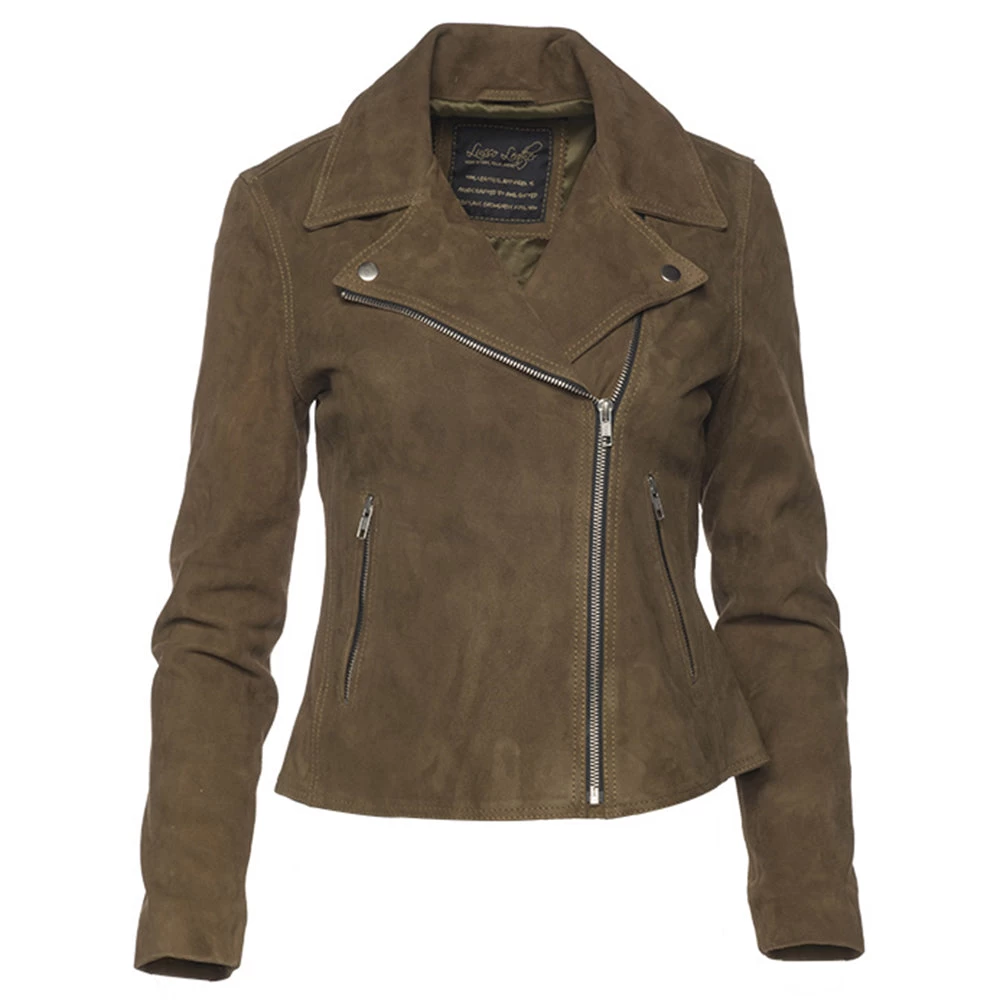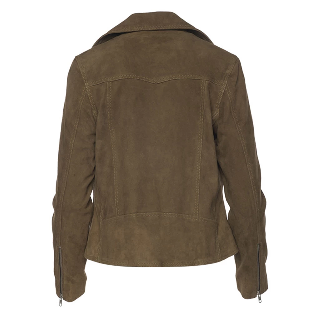 Sandra Olive Green Suede Biker Jacket from our collection, you’ll always be on trend. It’s made from soft full grain leather, and its olive green color will make you stand out from the crowd. Stylish details such as a notch collar style, open hem zippered cuffs, and zipper closure make it a great choice for your casual look. The perfect fashion statement for any occasion, step out in style.