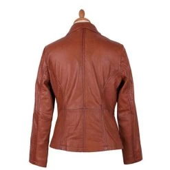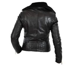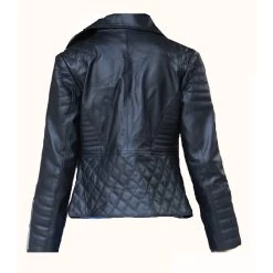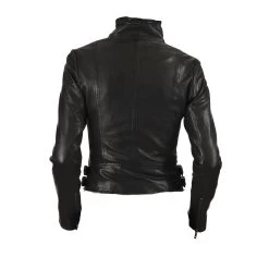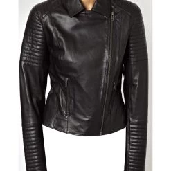 Women’s Black Biker Style Leather Jacket With Ribbed Panels