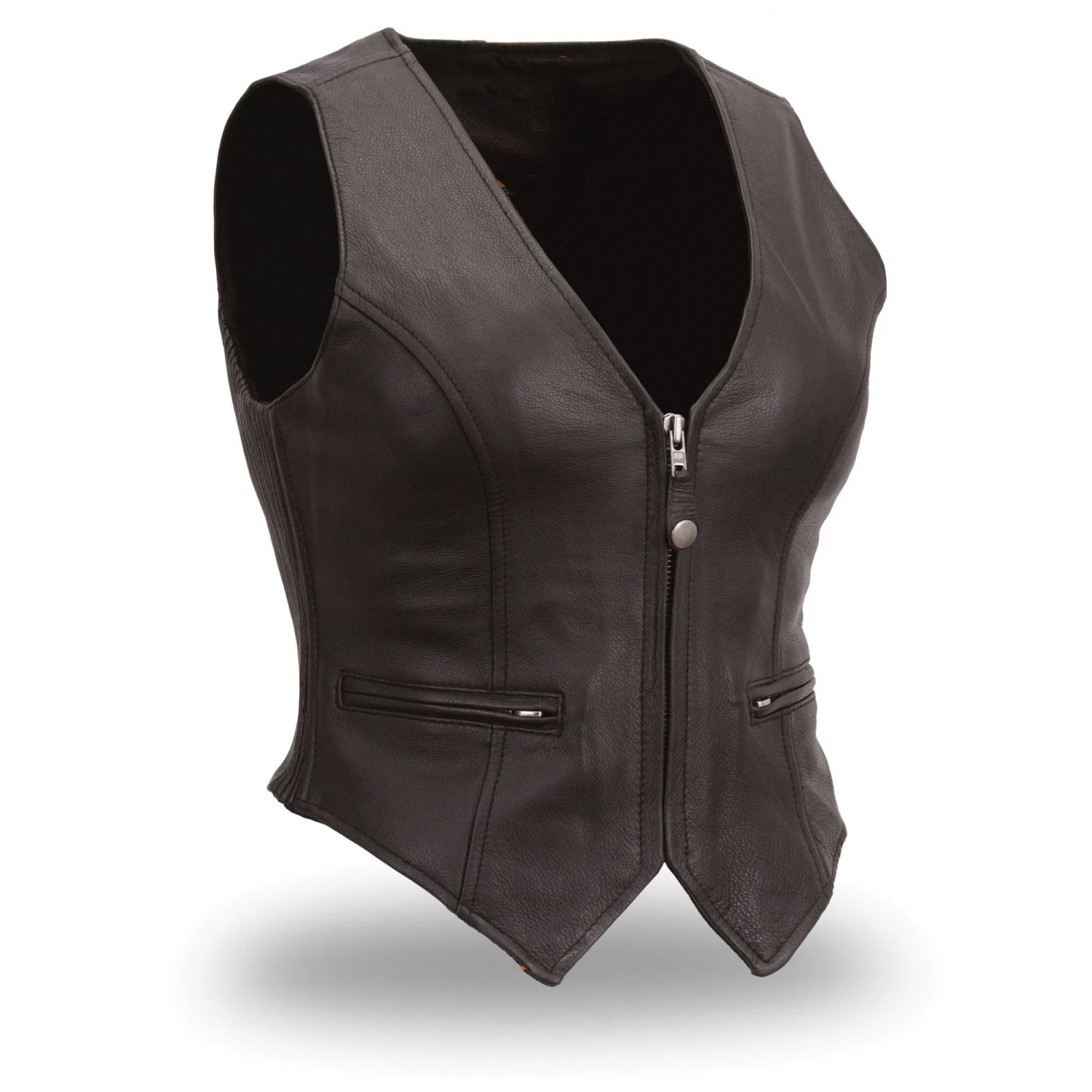 - Women’s black leather vest