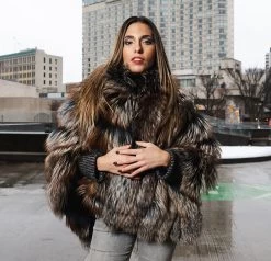 Sierra’s Purple Sheepskin Shearling Crop Jakcet With Hoodie And Fox Fur